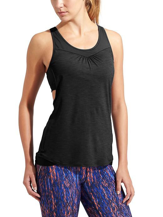 Naik ke puncak kelas kebugaran Anda di atas tanki latihan ini terbuat dari kain pelembab kelembaban.