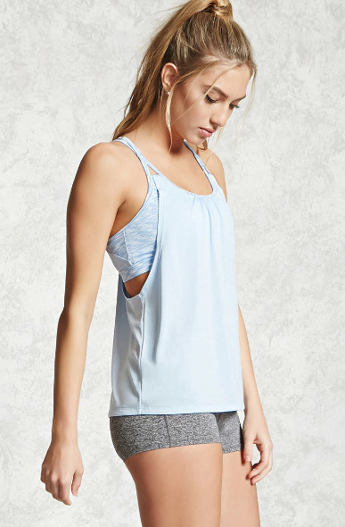 A elevação à parte superior de sua classe da aptidão nesta camiseta de alças cabida do exercício é feita da tela da umidade-wicking.